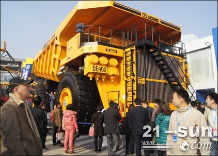 此次寶馬展上,徐工成功推出DE400礦用卡車。DE400是由徐州工程機(jī)械研究院研制生產(chǎn),是目前全球載重量最大的礦用卡車,載重量可達(dá)400公噸,最高速度50km/h,舉升時(shí)間24s。采用先進(jìn)的交流電傳動(dòng)系統(tǒng),原裝進(jìn)口環(huán)保電控高性能柴油發(fā)動(dòng)機(jī),動(dòng)力強(qiáng)勁。箱形截面結(jié)構(gòu)車架,由高強(qiáng)度優(yōu)質(zhì)合金鋼板和鑄鋼件制造。智能制動(dòng)技術(shù),防止誤操作。符合人機(jī)工程學(xué)的駕駛室舒適安全。整車配備自動(dòng)稱重系統(tǒng)、集中滅火系統(tǒng)、快速注油系統(tǒng)、自動(dòng)潤(rùn)滑系統(tǒng)及各種安全設(shè)備,保證整車運(yùn)行安全高效。
